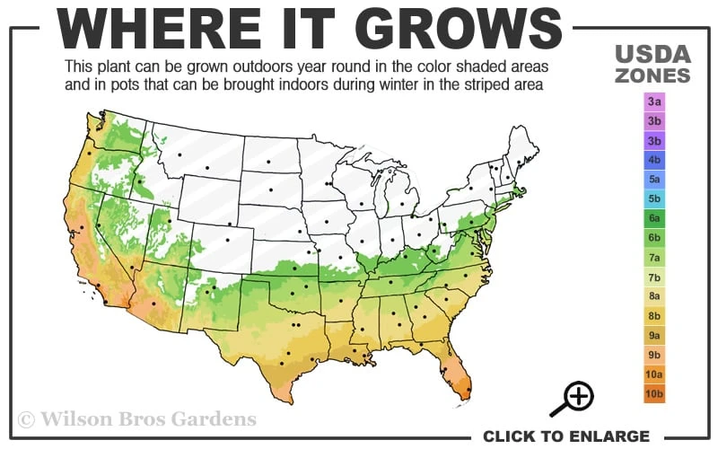 USDA Plant Hardiness Zones:Â 7a to 10b (6b?)Â Â Find Your Zone